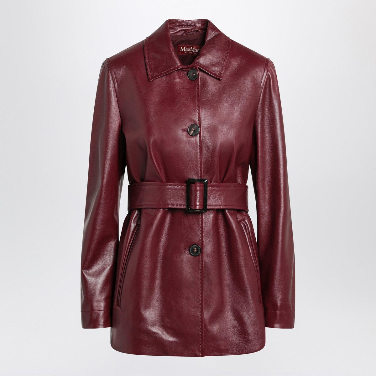Max Mara Studio Jacket with belt in Bordeaux nappa leather